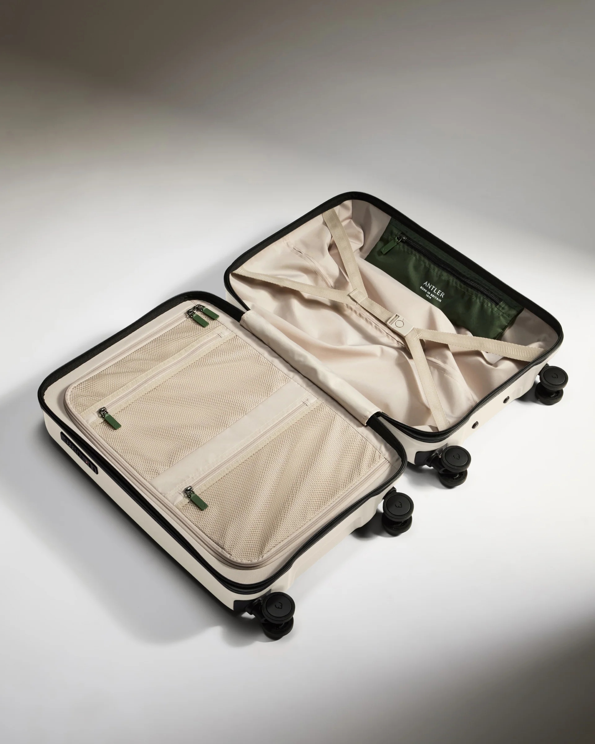 Experience unrestricted movement with our design combination of Silent Glide 360 spinner wheels and bespoke comfort-grip handle. The compact yet spacious fully recycled interior lining, featuring double-zip pockets and compression straps, provides ample space for your belongings.